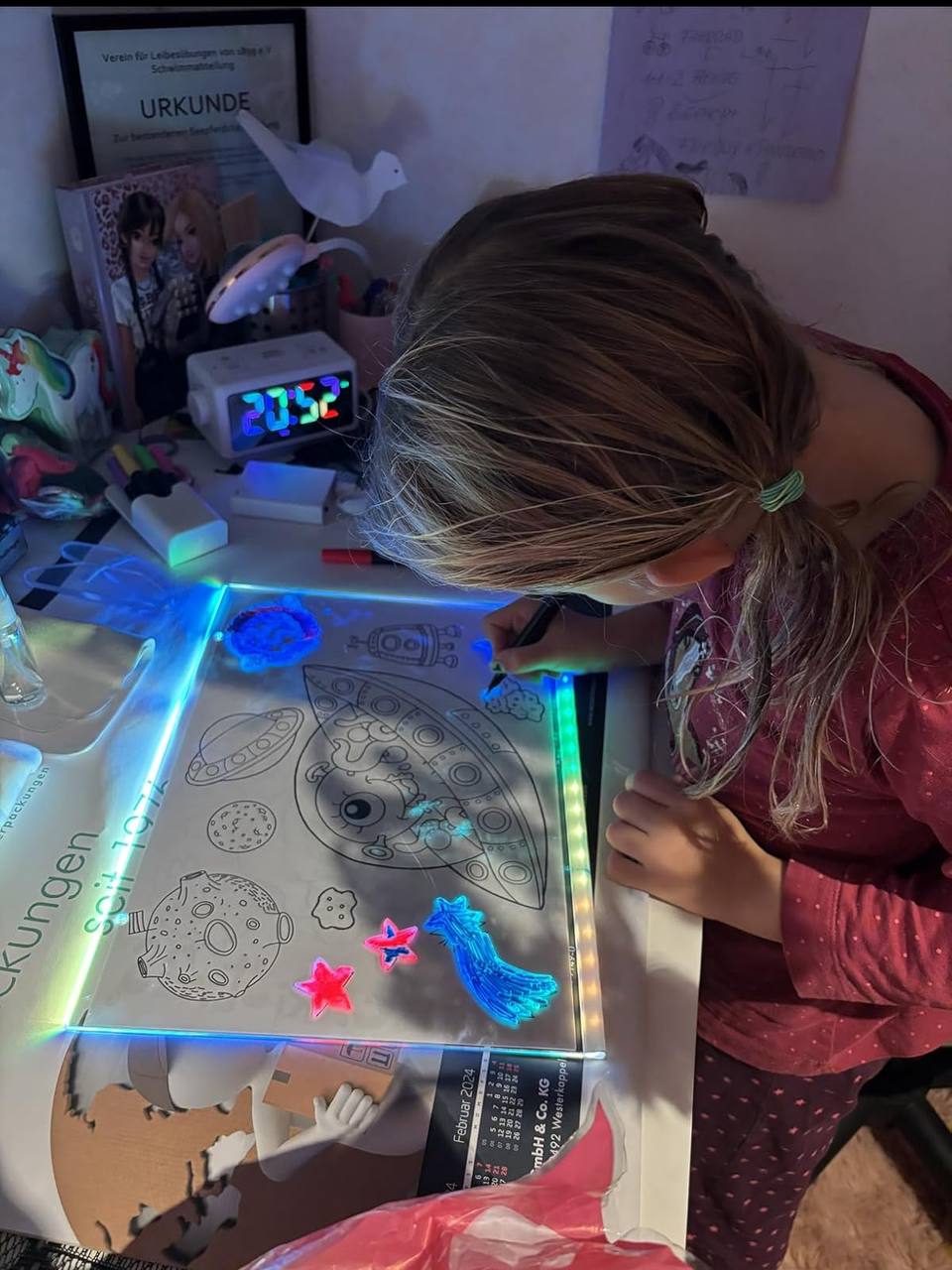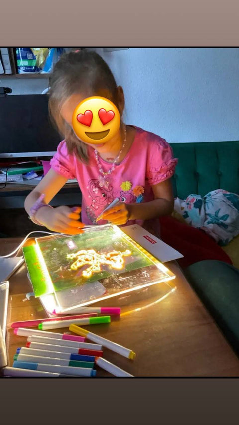 Fetița mea de 7 ani adoră această tabletă luminoasă. Desenează în fiecare seară acum, în loc să stea pe telefon. Calitate foarte bună și lumină plăcută pentru ochi.